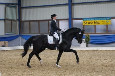 GB Don Calypso überzeugte bei den 5-jährigen Dressurpferden unter dem Sattel von Melanie Hofmann bei seinem ersten Start mit jeweils über 85 Prozentpunkten und ist damit bereits für die SM vorzeitig gesetzt. Der Zuchthengst, der bereits sehr stark frequentiert wird ,löste seine Aufgabe ohne Makel.