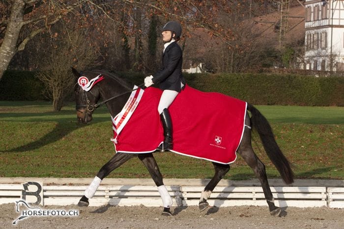GB Kayal du Perchet aus der Zucht von Pierre Saunier vermochte unter dem Sattel von Melanie Hofmann Richter wie Publikum zu überzeugen. In den Grundgangarten Trab und Galopp erhielt er die Maximalnote 9. Ebenfalls begeisterte er die Fremdreiter, die ihm in der Rittigkeit ebenfalls die Maximalnote 9 vergaben. Im Schritt erhielt er eine 8.5. Der sehr kompakte, 1.70 grosse Wallach, mit einem super Charakter bestätigte damit seine ausserordentlichen Qualitäten, die er bereits bei seinem Feldtest offenbarte.