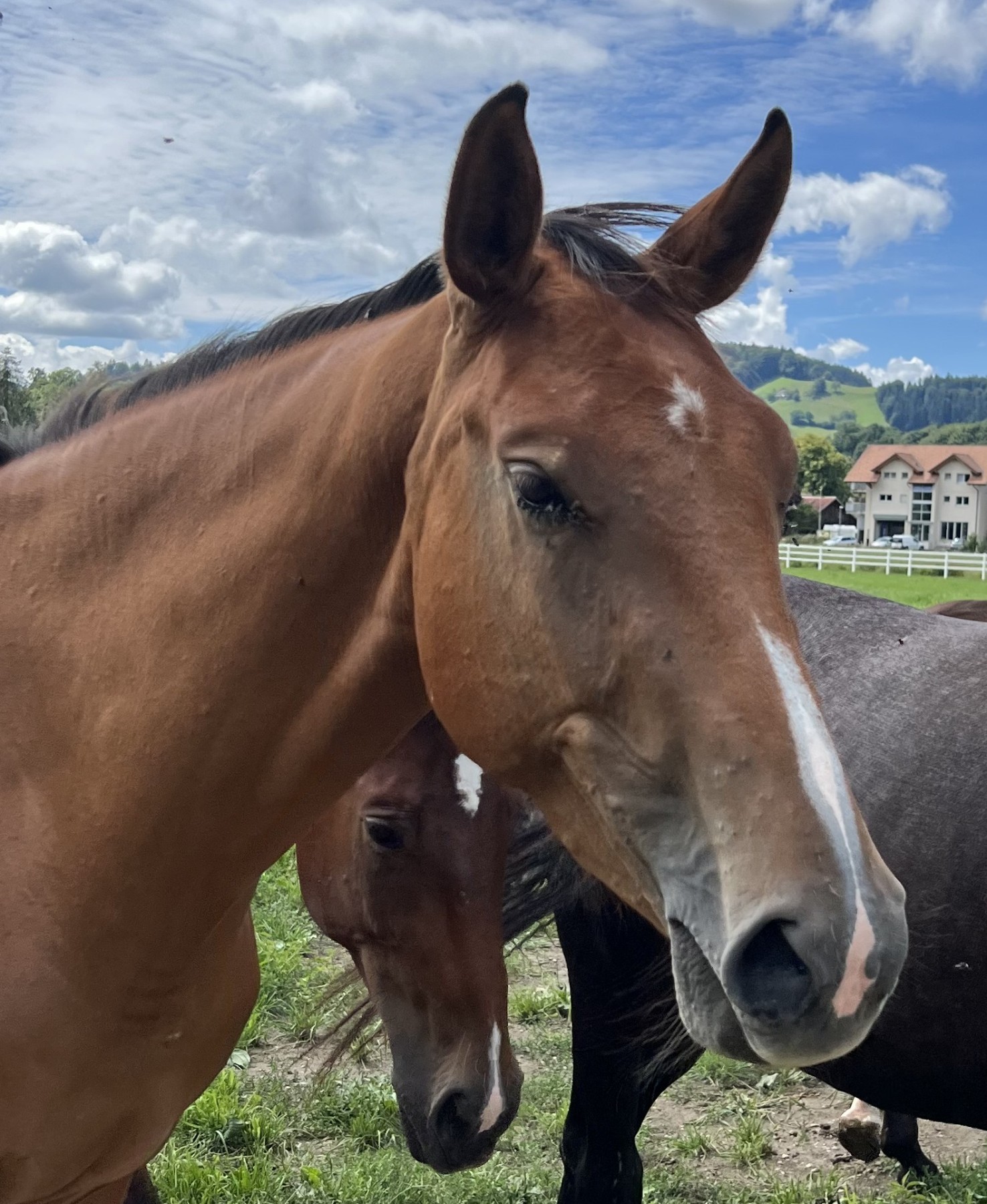 GB Sorpresa, eine sehr aufgeweckte, mit sehr viel Blut ausgestattete Springstute der Extraklasse, mit einem wunderschönen Gesicht und sehr viel Ausdruck. Die Abstammung lässt jedes Springerherz höher schlagen. Mit der Grossmutter GB Santa Lucia aus der Staatsprämienstute GB Retina ist der Mutterstamm optimal abgesichert mit vielen S-erfolgreichen Springpferden und gekörten Hengsten. Die Mutter wurde von der Juniorin Gianna Cristina Grunder sorgfältig aufgebaut und für den Turniersport vorbereitet, sie war mit der Juniorin bis international und bis zur Klasse M hoch erfolgreich, bevor sie in die Zucht wechselte. Bereits sind erste Nachkommen erfolgreich im Springsport.